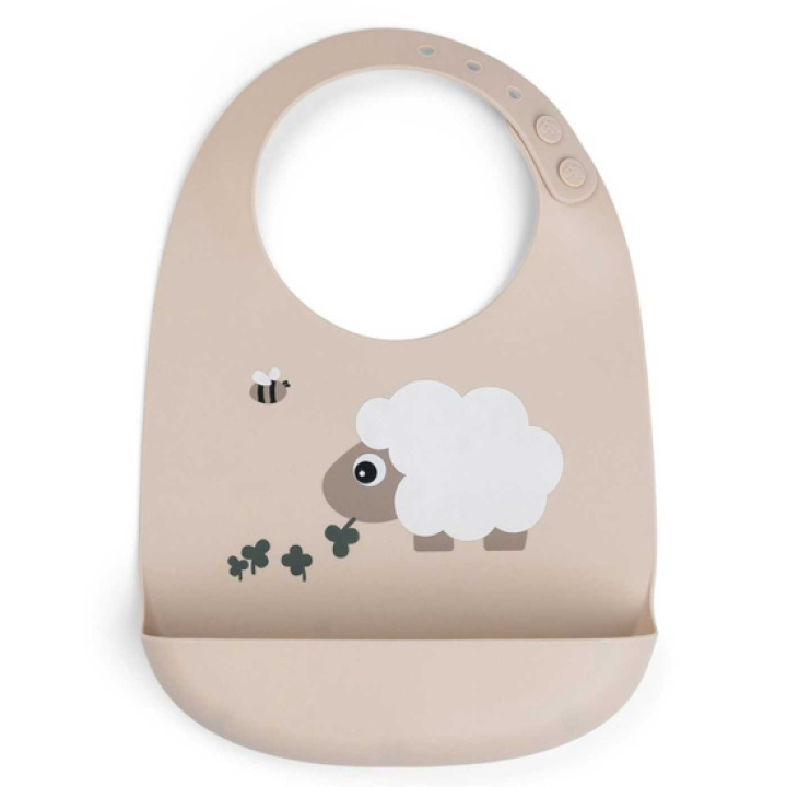 Laget av 100 % silikon er smekken både vanntett og enkel å rengjøre – skyll den av eller sett den i oppvaskmaskinen. Den fine beige fargen og det sjarmerende motivet av den lille sheepy gjør måltidene ekstra morsomme!