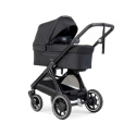 SENTO Flat er en innovativ barnevogn helt i sort hvor du virkelig får teste hva virkelig god demping kan bidra med til en barnevogns kjørefølelse. Med avansert sespensjon på alle fire dekkene (justerbart på bakhjulene), får barnet ditt fred og ro selv på de mest ujevne grus- og skogsveier.