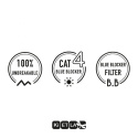 Linsene har en maksimal UV-beskyttelse (100%) og er behandlet mot riper. Buen er myk og lett. For barnets sikkerhet er buen av et enkelt stykke med ingen løse deler. Justerbar bånd er inkludert. Helt fri for BPA, ftalater og kan resirkuleres 100%. Oppbevaringspose laget av 100% økologisk bomull er inkludert. CE-merket.