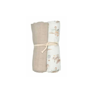 Myke og fine muslin-tepper fra Mini Dreams i settet Flying Friends Hvit. Inneholder ett ensfarget teppe i varm sandfarge og ett med det sjarmerende mønsteret Flying Friends. Laget av 100 % øko-tex-sertifisert bomull, skånsom mot barnets sensitive hud. Perfekte som koseteppe, lett soveteppe eller beskyttelse i vognen.