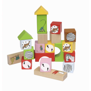 Dette settet med 30 treklosser inviterer til uendelige muligheter. Klossene er fargerike og solide, perfekt for små hender å stable, bygge og skape med. På den ene siden av klossene finner du de klassiske illustrasjonene av Pippi og vennene hennes, som gjør byggeleken enda mer levende.