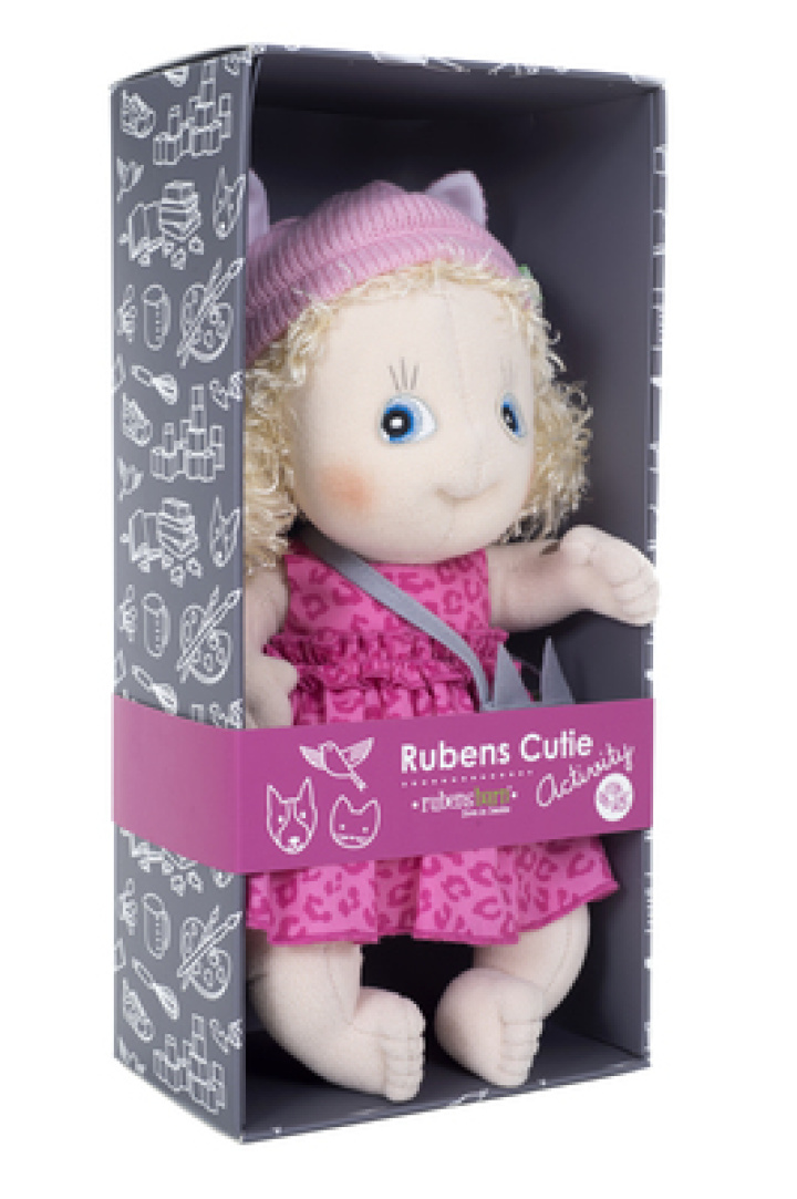 Rubens Cutie er tilpasset i størrelse og vekt for å passe som den første dukken for det lille barnet. Fantastisk håndlaget dukke av høyeste kvalitet med mykt realistisk hår og flyttbare klær. Dukker fra Rubens Barn er klemmevennlige og har et vennlig smilende ansikt som gjør barnet lykkelig. Dukkene er pedagogisk gjennomtenkt og leken hjelper barnet med å utvikle empati når det tas vare på dukken som om det var en ekte baby. Designet er laget i Sverige og hver dukke har sin egen karakter og personlighet.