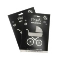 Tinkafu® klisterreflekser er spesialdesignet for barnevognens understell, og bidrar til å gjøre vognen mer synlig i trafikken. Med disse reflekselementene kan andre trafikanter oppdage barnevognen opptil fem ganger raskere. Tinkafu® refleksark finnes i både sølv og svart. Alle ORALITE®-produkter er produsert i Norge av en ISO 9001:2008-sertifisert leverandør.Et refleksark inneholder: