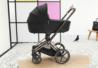 Med Cybex Priam trenger du ikke ekstra adaptere for å feste babystolen til barnevognen. Du kan enkelt bytte mellom liggedelen og bilsetet på understellet.